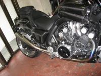 最近になって1700MAXも増えてまいりました。まだまだ発売台数が少ないうえに高価なバイクなのでまともに流通するのは5年はかかりそうですね。でもそんな中マフラーやらホイールやらで忙しい今日この頃です。先日は1200から1400ccにしてたバイクを売り1700に乗り換えた佐藤号に4本出しSOマフラーとローダウンシートを取り付けました。さっそくオーナーさんに感想を聞きましたらシートはかなり低くなり足付き性が向上したようです。マフラーはESPER定番の4本出しで決めています。