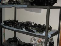 棚に整理したエンジンパーツ群