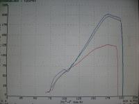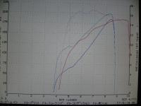 (赤ラインが1700NA逆車、青ラインが1200TURBO (8500回転 193PS−16.4kgm))