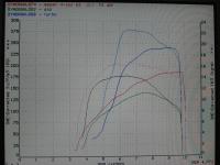 3枚目の画像で、TURBOは青い線でA/F値を揃えて、マフラー外して242馬力 トルク22.5kg−m!!緑の線は国内STD!!赤はESPER車輌の集合マフラーです。