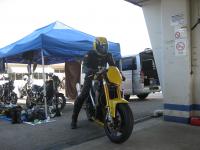 軽く流していましたが、ライバル(1200VMAX)たちを見ていると、ついつい、遅いながらも、気合を入れてしまい、ブレーキがフェード気味になってしまったのでクールダウンと称してピットにもどって体を(笑)休めました。