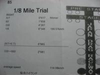 肝心の私は1700のTURBOで参戦、Aクラスで、タイヤはストリート用、スイングアームをSTDに戻してのトライでしたが案の定、スロットルを全開にしてしまうとウイリーが始まり、仕方なく1速、2速はハーフスロットルでチャレンジしベストなタイムが6秒348、終速190km/h以上で、1/4マイルのレースであったならば確実に9秒前半を狙えたタイムを出しました。簡単に書きましたが、ミスすると平凡なタイムになります(汗)