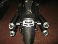外見は一見STD風に見えますが、120mmロングスイングアーム他、スタック、タコメーター、ブレーキ、クラッチ、ハンドルをさりげなく変更しています。問題のロングスイングアームは改造の申請をして堂々と公道を走れるように致しました。
