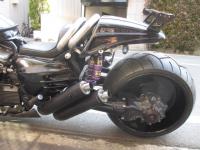 ・・他ワンオフWアーム、vmax用社外テールカウル、クワンタムサスペンション、 ESPERワンオフロングスイングアーム280㎜、 10Jデイッシュホイール、 280/18インチタイヤ、 新型v-max用デフ&カーボンウイングを流用しカスタムしました。