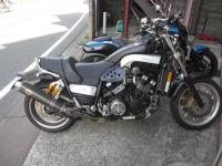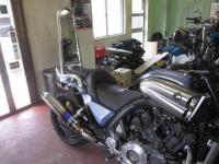 先日珍しく2台の最終型VMAXの入庫です。車検整備とスイングアームカスタム他